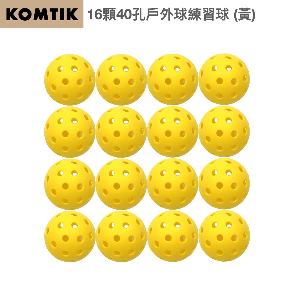 KOMTIK 匹克球 練習球 16顆 40孔戶外球 型號 黃色