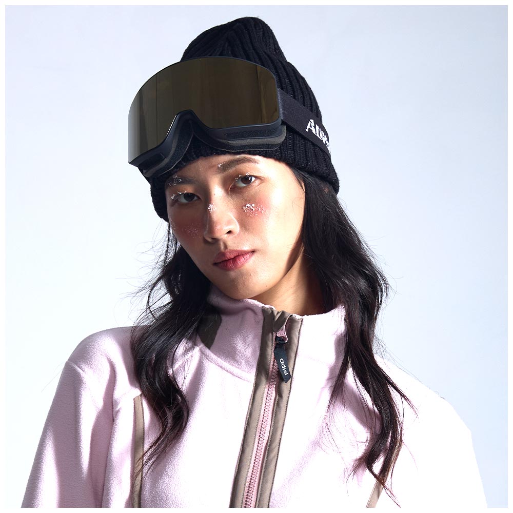 防霧雪鏡【霧黑框/茶片+金REVO】黑止滑織帶 AS25044 / 台灣製造