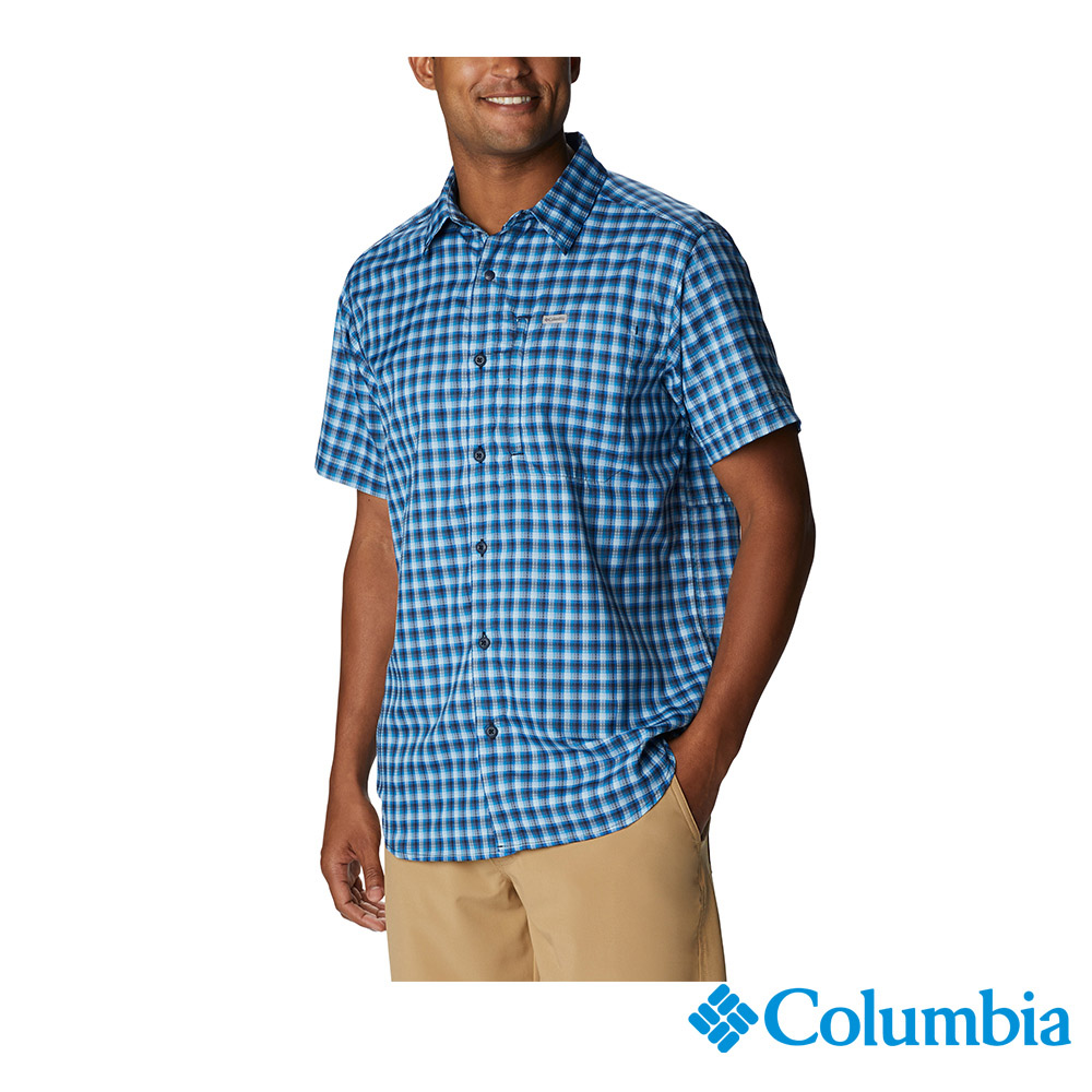 Columbia哥倫比亞 男款 -Omni-Shade 超防曬UPF50快排短袖襯衫-藍色格紋 UAE09380JC (2023春夏)
