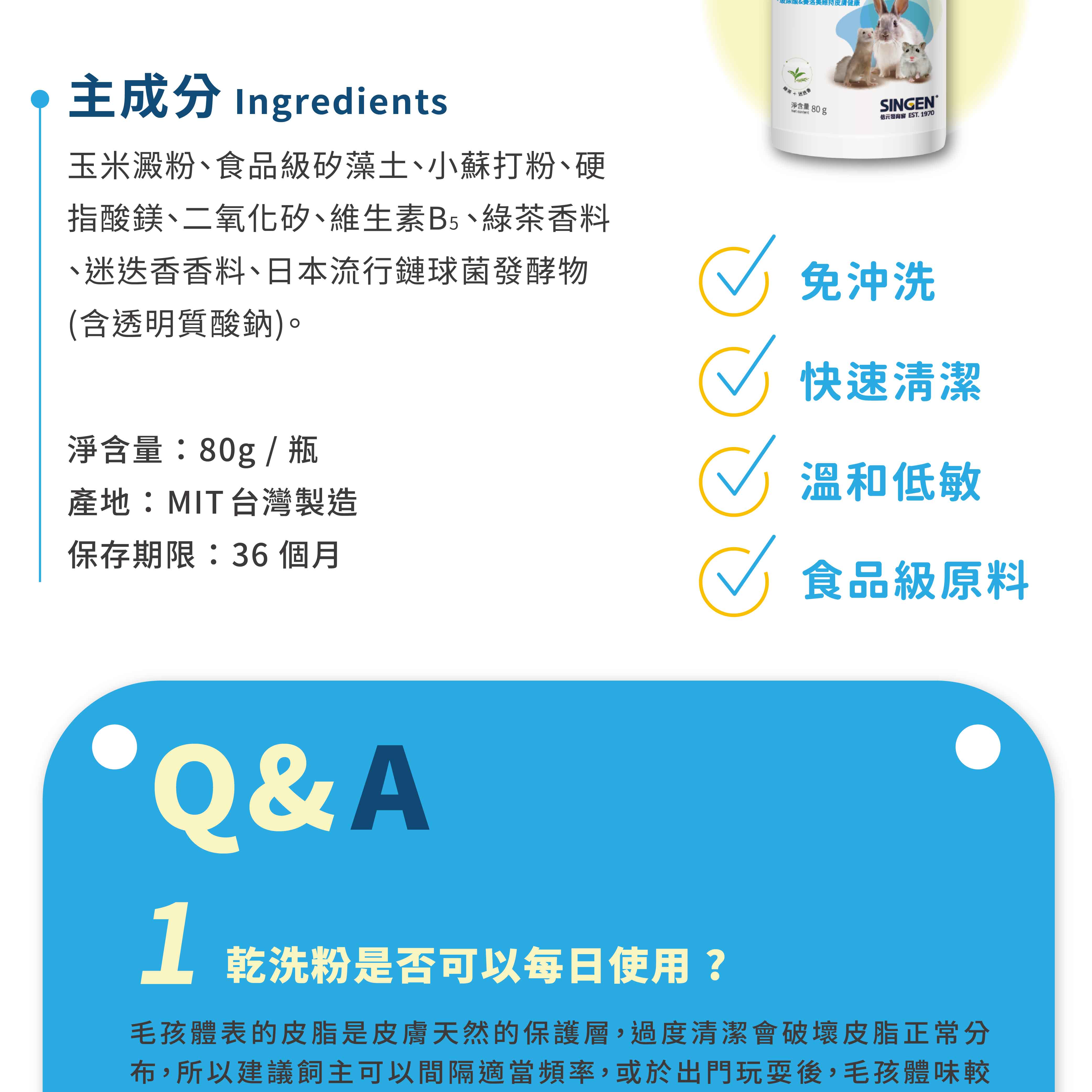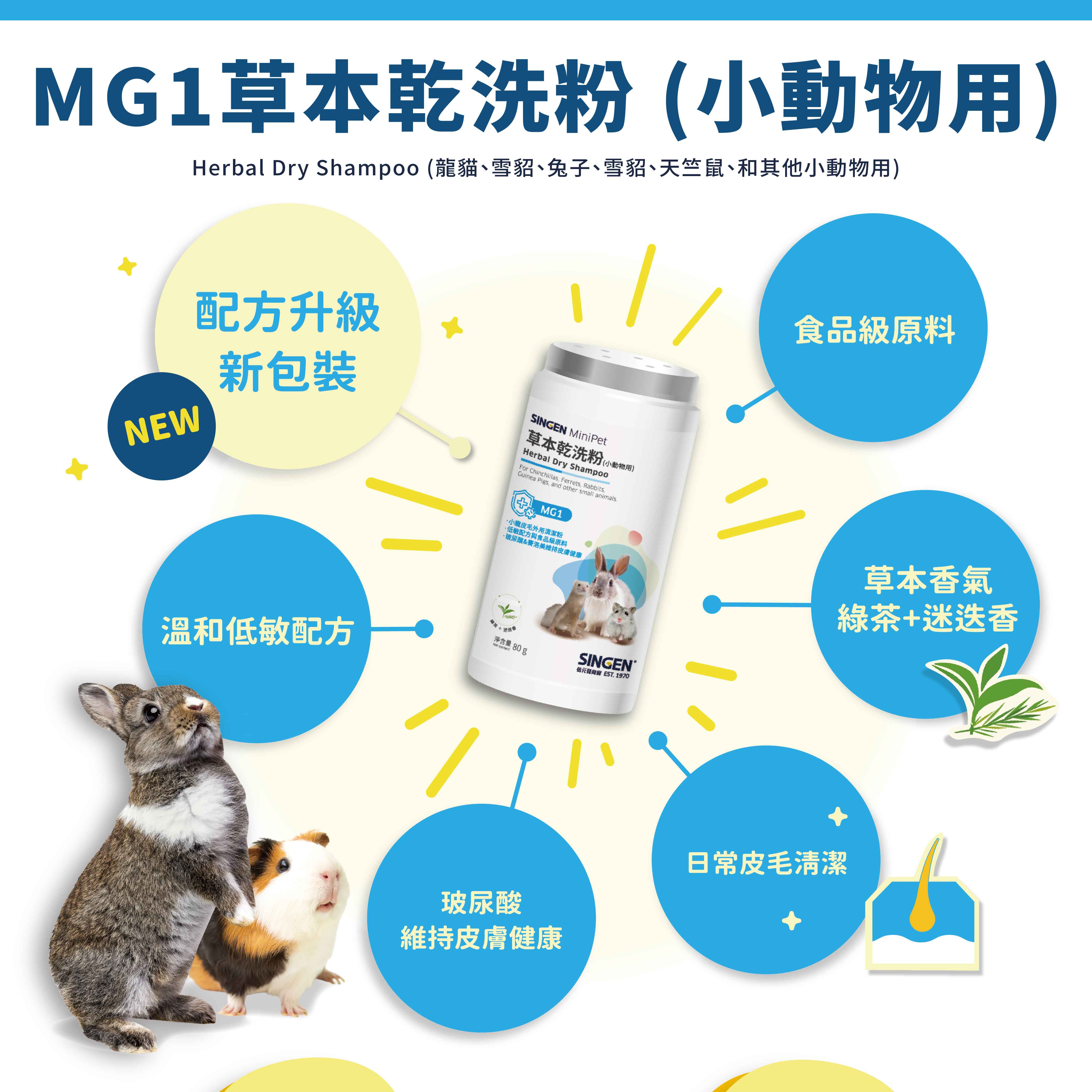 SINGEN信元發育寶 兔子倉鼠雪貂用除異味溫和低敏外用小寵物乾洗粉-80g/罐 天竺鼠
