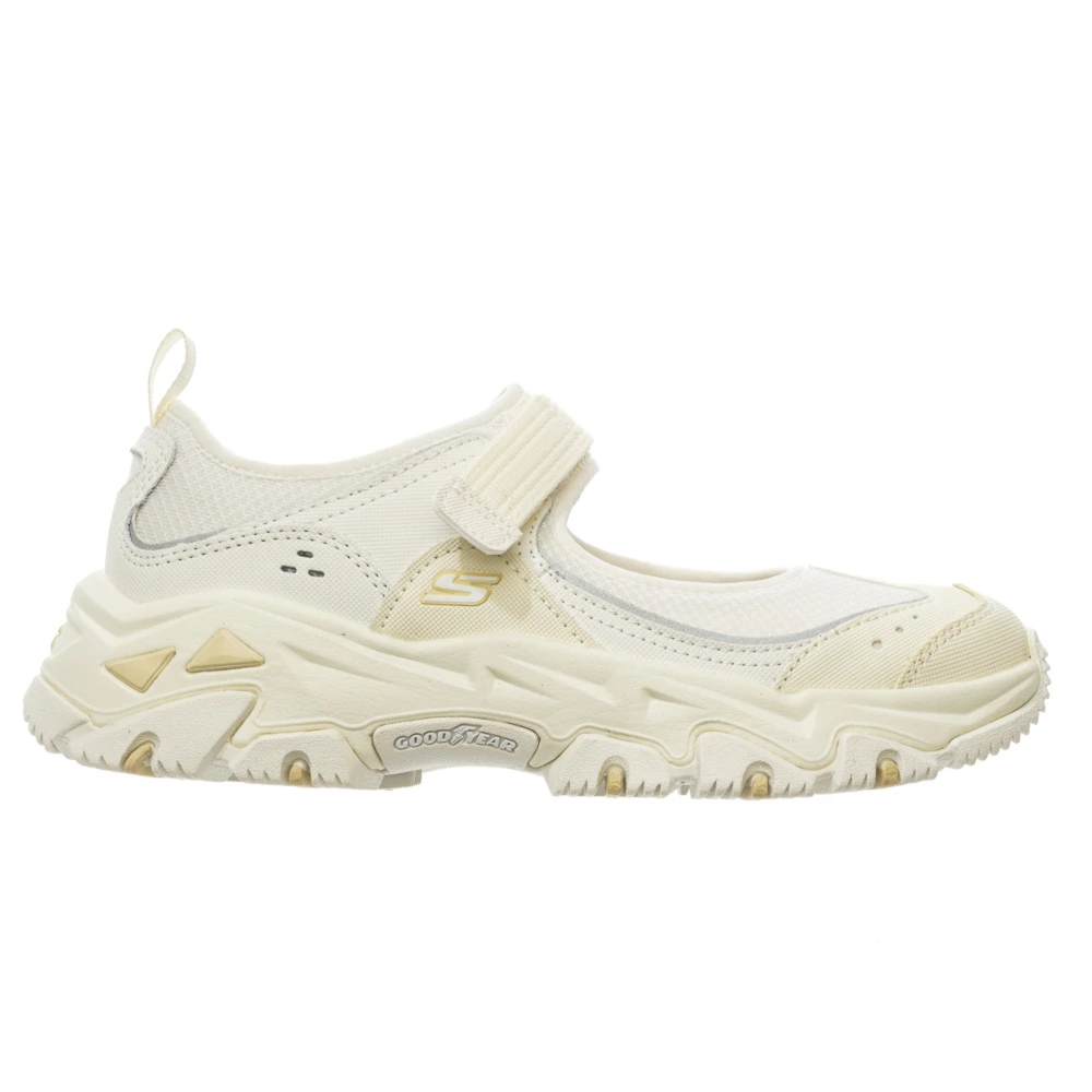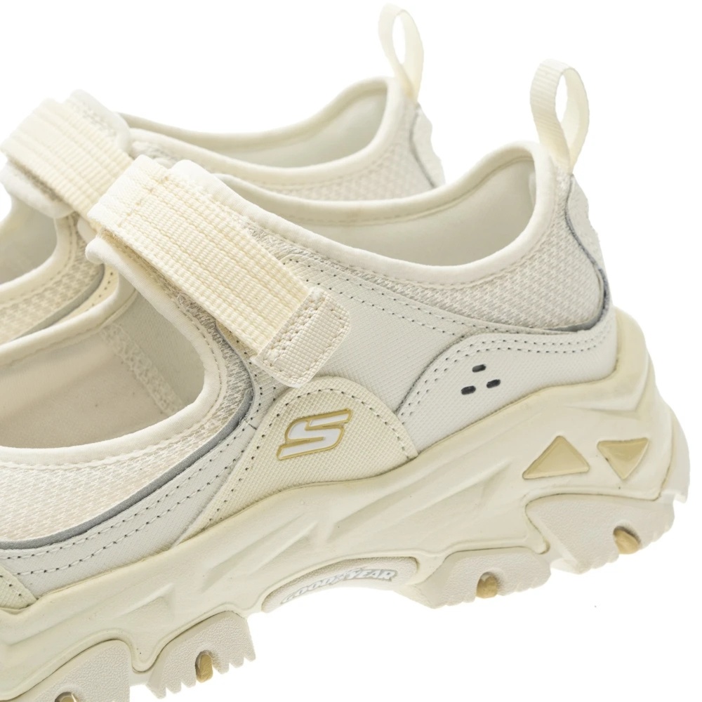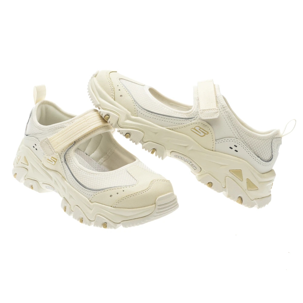 - D'LITES HIKER 系列,瑪莉珍休閒鞋,異材質拼接鞋面,運用網布、皮革和皮面裁片,打造出全新的山系機能風外觀,是都市山系風格的理想選擇。輕量避震緩衝中底,舒適好穿,減少對足部的衝擊力。GOODYEAR® 固特異橡膠大底,提供超乎想像的耐用性、穩性性和抓地力。(大底橡膠來自美國俄亥俄州的百年國際知名橡膠輪胎品牌固特異,每雙 SKECHERS x GOODYEAR 的鞋款,都配置有保證固特異真品輪胎橡膠的 GOODYEAR雷射標籤吊牌,杜絕仿冒,請認明真品)多角度加深刻痕設計,提供強大的抓地力。瑪莉珍休閒鞋,搭配一段式魔鬼氈黏扣帶,能依據自己的腳型調整鬆緊度,穿脫容易。AIR-COOLED MEMORY FOAM® 加強透氣記憶型泡棉鞋墊,讓您走的每一步就像踩在枕頭上一樣舒服並隨時保持乾爽透氣。