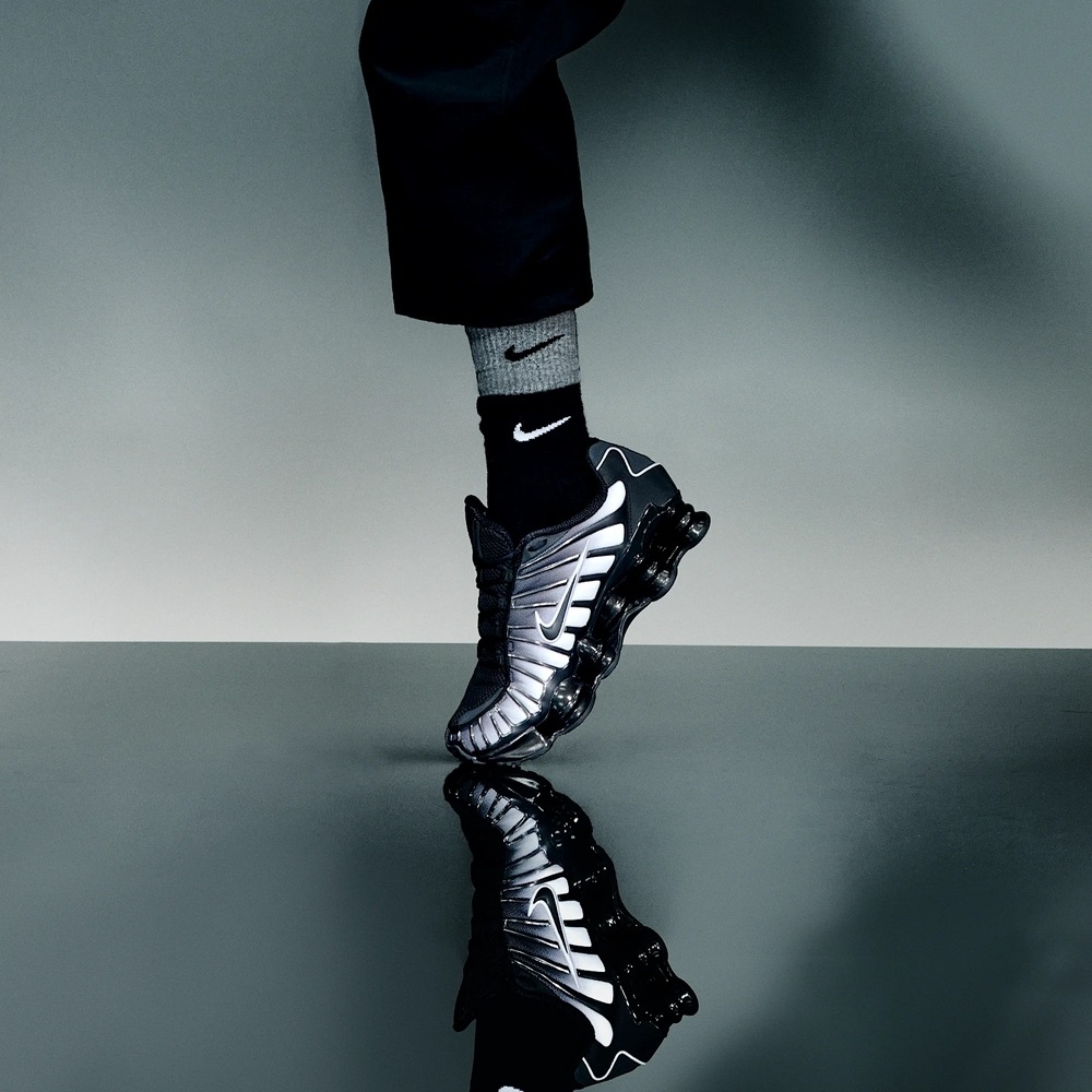 - 2003 年經典鞋款以漸層配色和經典風格強勢回歸。 經典裝飾片和全掌式緩震柱,肯定會再次成為眾人矚目的焦點優點* 尼龍網布鞋面,著感透氣* Nike Shox 氣柱提供強韌緩震效果* 塑模裝飾片包覆中足,穩固貼合* 鞋跟的強韌鞋底墊片位於中底與 Nike Shox 緩震系統之間,有助側向穩定性與支撐力產品詳細資料* 泡棉中底* 橡膠外底* 不適合作為個人防護裝備 (PPE)