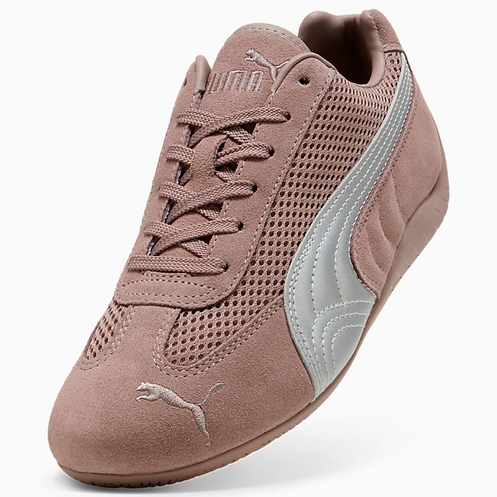 - 產品故事源自賽道速度靈感的 PUMA 經典之作:Speedcat OG 運動鞋。以經典賽車鞋為靈感的鞋型,搭配流暢俐落、充滿速度感的線條設計。此高級版本採用網布鞋面,並於側邊加入金屬皮革 PUMA Formstrip。以這款經典輪廓,掌握低調潮流風格。細節寬度:標準麂皮拼接網布鞋面固定方式:鞋帶內裡:合成材質金屬質感 PUMA Formstrip包覆後跟的橡膠外底PUMA 品牌細節材質77.76% 皮革(牛皮)、20.06% 紡織材質、2.18% 合成材質