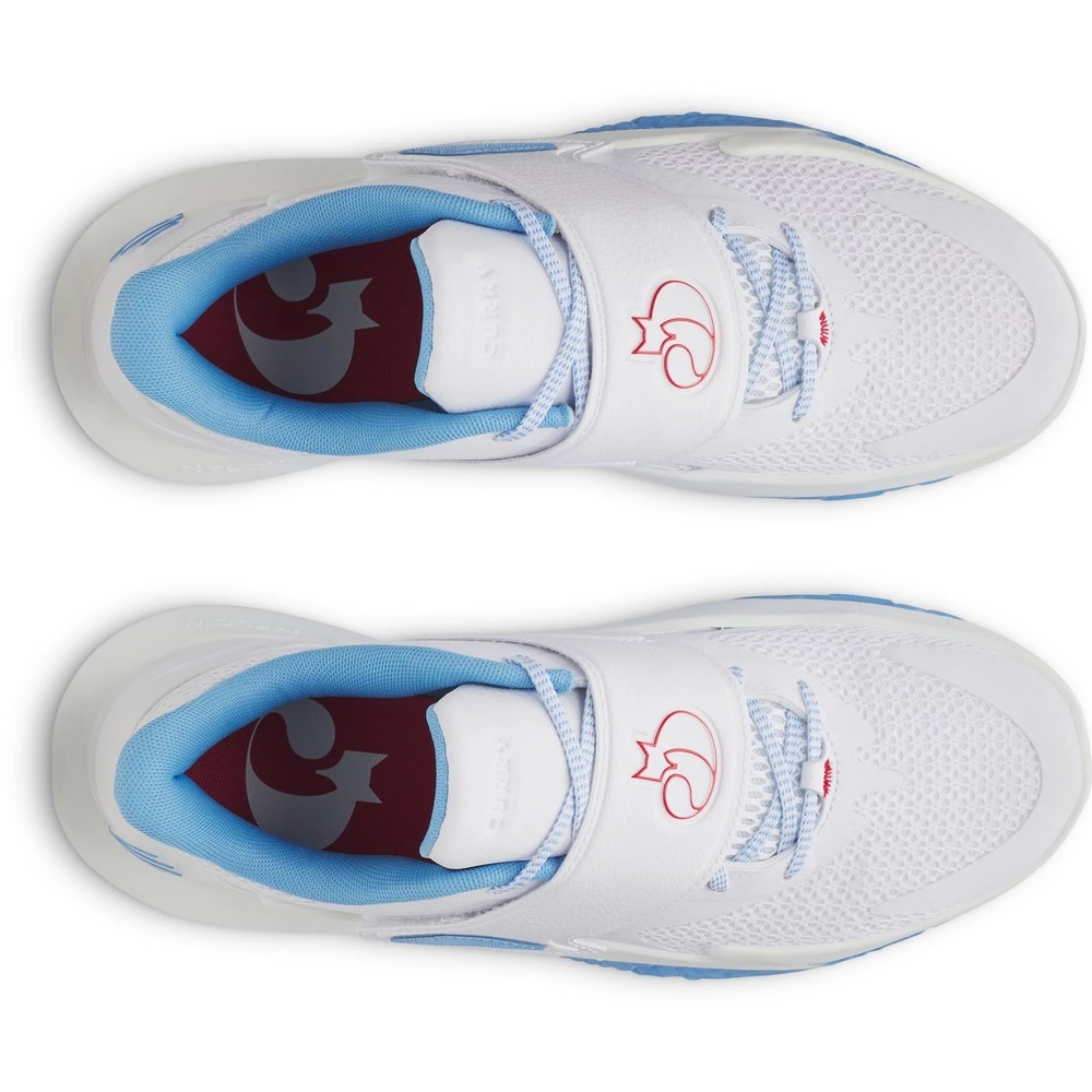 - 鞋面採用輕量化紡織材料與薄膜結合,以提升透氣與動態貼合。配有鎖定腳踝的 TPU 後跟穩定片(外側支撐)與鞋面橫跨帶(strap)設計,以加強腳的包覆與動態穩定。中底搭載Charged Cushioning® 技術,並搭配高耐磨UA Flow™大底,兩者結合提供彈性緩震與卓越抓地。專為追求速度、變向敏捷的球員打造,強調快速起動、急停與切入的支持能力。