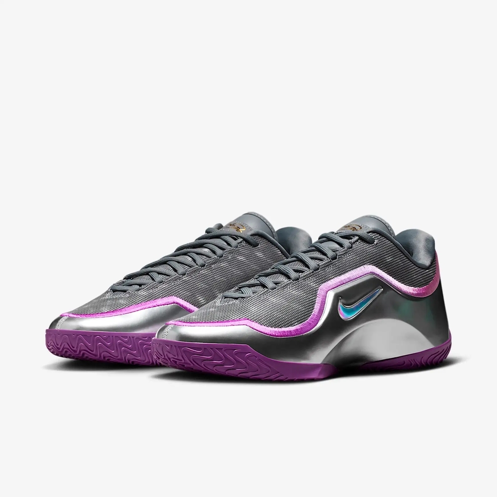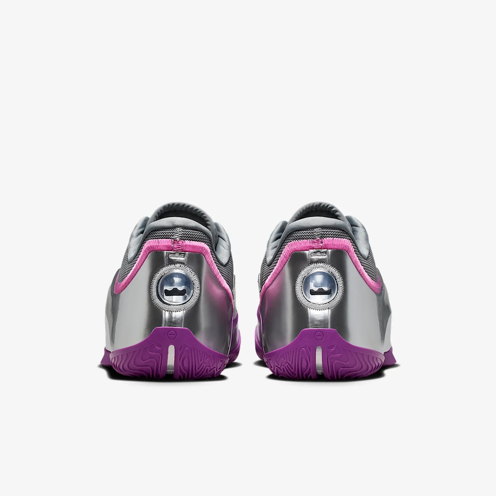 - 鞋款右腳以 LeBron 為主題,加入經典金色元素;鞋跟飾有「CHOSEN 1」標誌,向其傳奇職業生涯致敬。 左鞋採用黑與紫配色,搭配鞋跟「1 WHO CHOSE」標誌,象徵 Bronny 的個性球風,彰顯其個人風格。 兩隻鞋的鞋面飾有象徵 LeBron 多年稱霸球場的大皇冠圖案,以及象徵 Bronny 潛力的小皇冠圖案。流暢活動籃球鞋搭載 Nike 先進的籃球產品技術,創造出眾的輕盈回彈性能。全掌式 ZoomX 內嵌式中底,塑就充沛回彈效果。碳板增加抗扭轉性能,增強足部支撐力;多向抓地紋路,讓你佔據上風,穩據「王座」。全程強穩創新包裹系統採用中足弧形「王冠」結構設計,在急速進攻或堅守防線時提供強勁穩定支撐,助你全場盡顯王者姿態。輕取勝局鞋採用工藝提花鞋面與優質襪式結構,實現輕盈與奢華兼備。讓你迅速到位,精準變向,直到鎖定勝局。