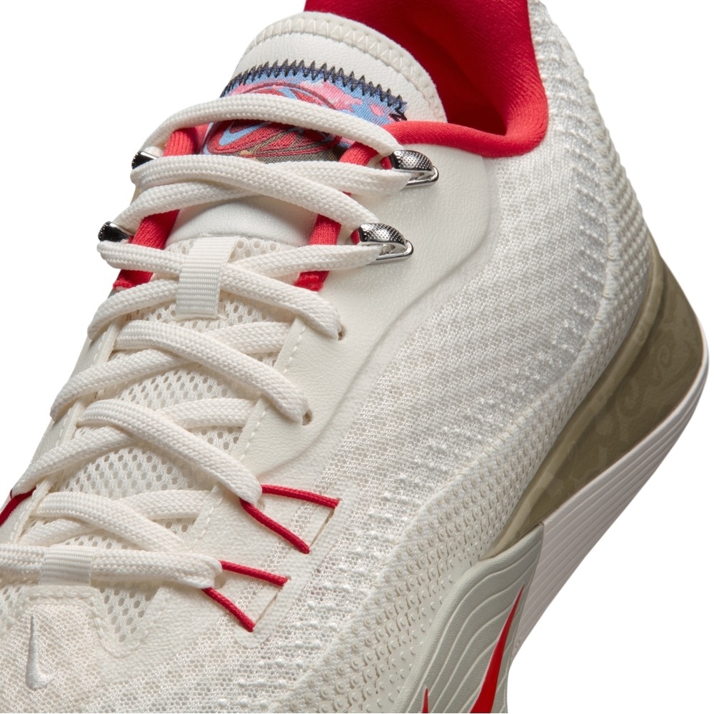 - 穿上 Nike S.T. Flare EP 馬年限定脫韁系列新年款耐克氣焰男/女籃球鞋,準備制勝出擊。中底後跟飾有腳踏飛馬圖案,旨在慶賀馬年。此鞋款專為戶外比賽精心打造,耐穿且具備出色透氣性,助你制霸球場。耐穿橡膠外底提供可駕馭戶外球場的強勁抓地力。疾速表現前足 Air Zoom 緩震配置,帶來出眾回彈效果與迅捷表現。順暢邁步足底融入精心設計的泡棉,打造柔軟腳感,讓雙足在比賽中保持充沛活力;外底強韌橡膠材質向上延伸,有助於應對泡棉磨損。急起急停,輕鬆自如精心設計的人字形底紋從後跟延伸至鞋頭,打造強勁抓地表現,助你輕鬆自如地急起急停,實現側向突破與快速移動。產品細節透氣網眼設計金屬鞋眼