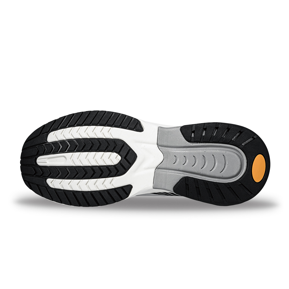 - 1.鞋面使用透氣緹花紋路網布,提供輕質的穿著舒適性。2.鞋墊採用Q彈乳膠材質以及足弓支撐的設計,有效吸收衝擊力、減輕足部負擔。3.全新增厚緩震氣墊搭配雙密度彈性中底材質,提供最大化的避震效果。4.硬質橡膠大底提供抓地、止滑耐磨效果。5 .安全反光設計增加辨識度,有效提升夜間運動的安全性。