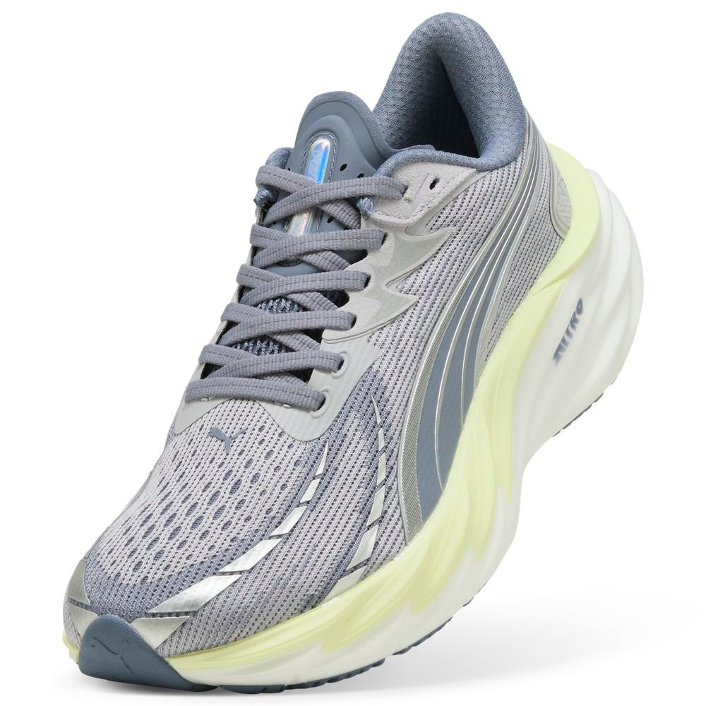 - PUMA Velocity NITRO™ 4 Wns慢跑鞋專為不同程度的跑者量身打造,結合優異避震、輕盈腳感與全方位舒適度,陪伴跑者從日常訓練到賽事備戰。今年進化登場的第四代版本,打造減輕 14g 的極致輕盈,回彈與透氣性全面升級 。此外,第四代版本更是首度升級採用全長式 NITROFOAM™ 氮氣中底,獻上絕佳能量回彈,打造更優異的緩衝與跑步效率;鞋後跟特別採用斜角半徑設計,增強落地時的穩定性與耐用度;鞋面則升級透氣鞋面,選用較薄的工程網布,提升前腳掌貼合度與透氣性,並結合 PWRTAPE 強化支撐與耐用性;搭配 PUMAGRIP 防滑橡膠大底,提供全方位路面優異的抓地力,讓跑者無論面對城市街道或潮濕環境,都能保持流暢步態與穩健配速。