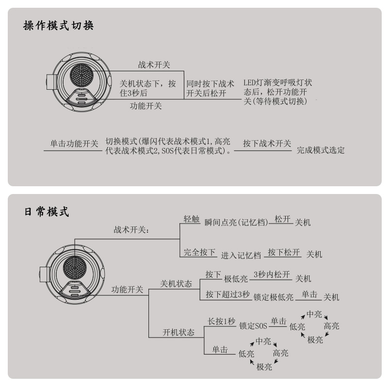 ●戰術雙尾控制,快速實現一觸即亮、一鍵爆閃。