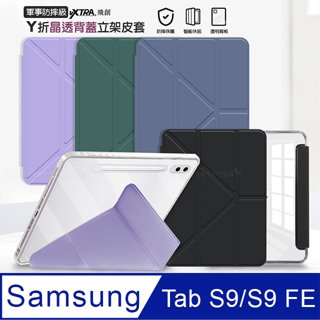 VXTRA 飛創 軍事防摔級 三星 Galaxy Tab S9/S9 FE 11吋 Y折晶透背蓋立架皮套 含筆槽 X710 X716 X510