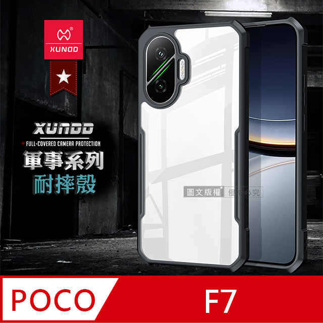 XUNDD 訊迪 軍事防摔 POCO F7 鏡頭全包覆 清透保護殼 手機殼(夜幕黑)
