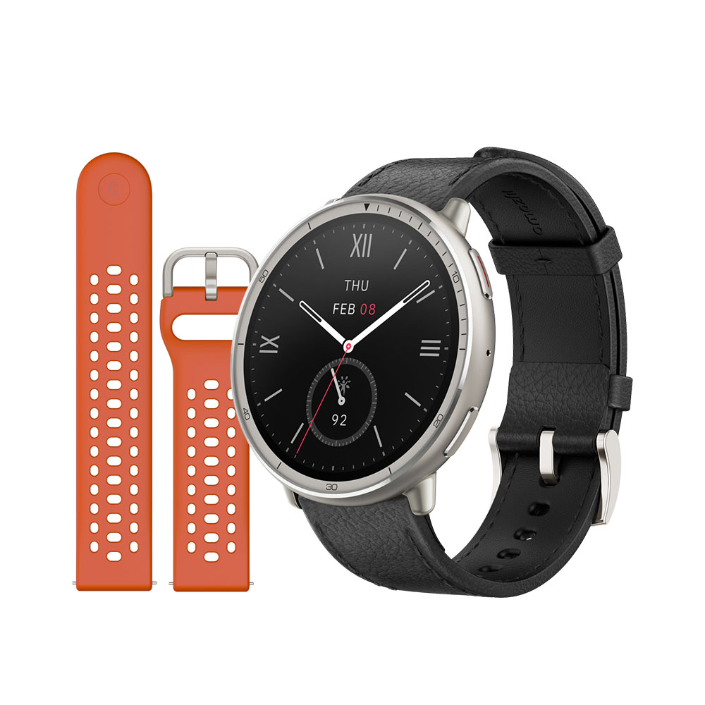 Amazfit Active 2 藍寶石鏡面版 44mm 智慧手錶 柔霧黑-皮革錶帶 (160+種運動模式/24HR健康偵測/5ATM防水)