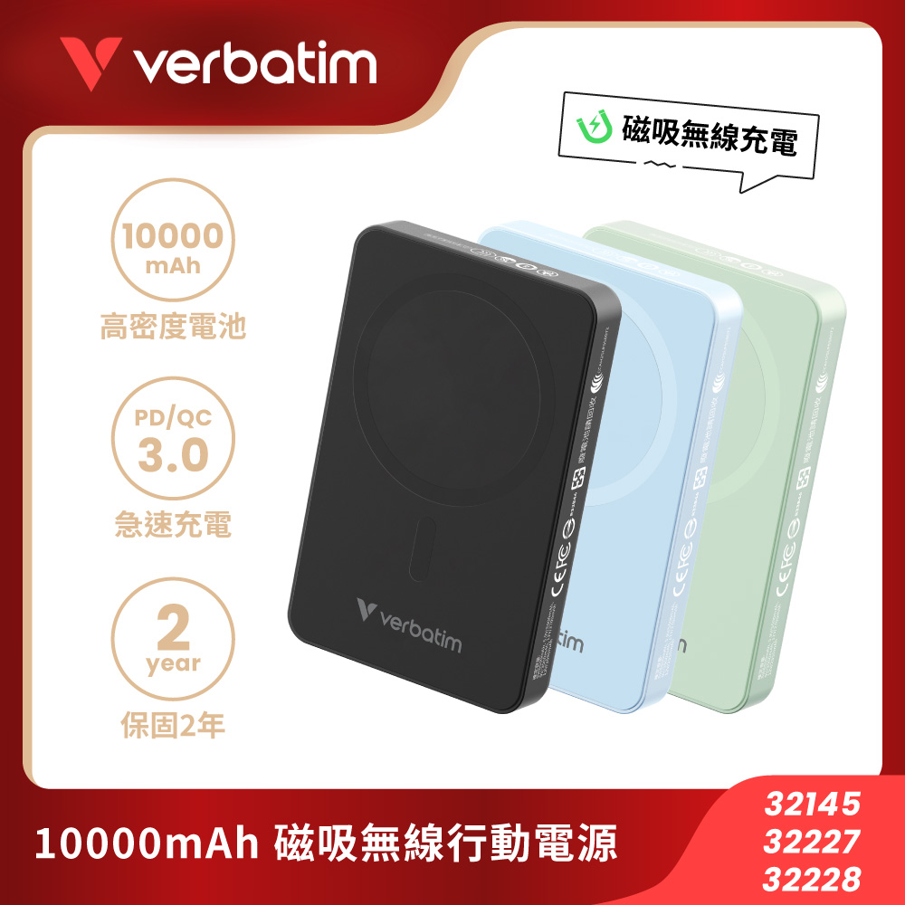 Verbatim 威寶 Charge ’n’ Go 10000mAh 磁吸無線行動電源 PD 3.0 / QC 3.0 無線快充