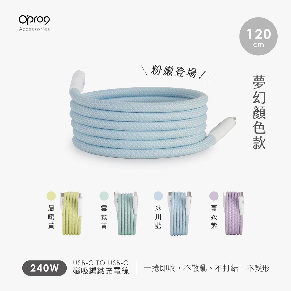 Opro9 USB-C (Type-C) TO USB-C (Type-C) 240W 磁吸編織充電線 1.2M