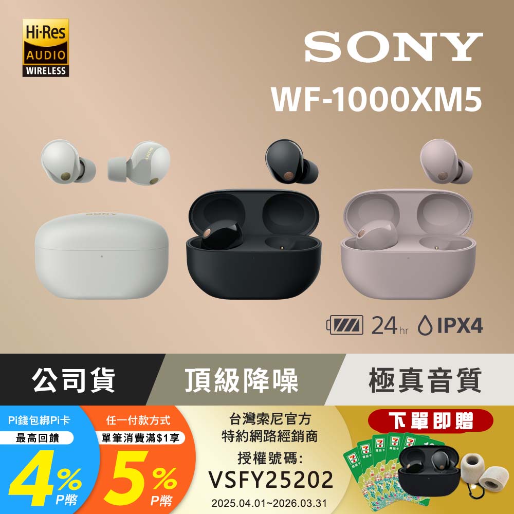 SONY 索尼 WF-1000XM5 旗艦真無線藍牙耳機 (公司貨 保固 12+6 個月)