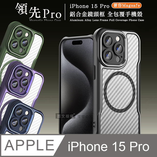 RUGGED SHIELD 領先Pro iPhone 15 Pro 6.1吋 鋁合金鏡頭框 碳纖紋磁吸防摔殼 手機殼