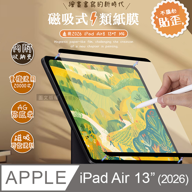 Antiglare 2026 iPad Air8 13吋 M4 磁吸可拆式類紙膜 繪畫筆記專用膜保護貼