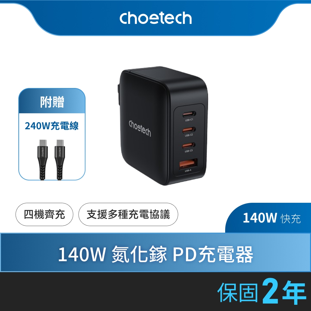 Choetech 140W GaN氮化鎵 4孔(3C+1A) Type-C PD快充器 (PD3016)