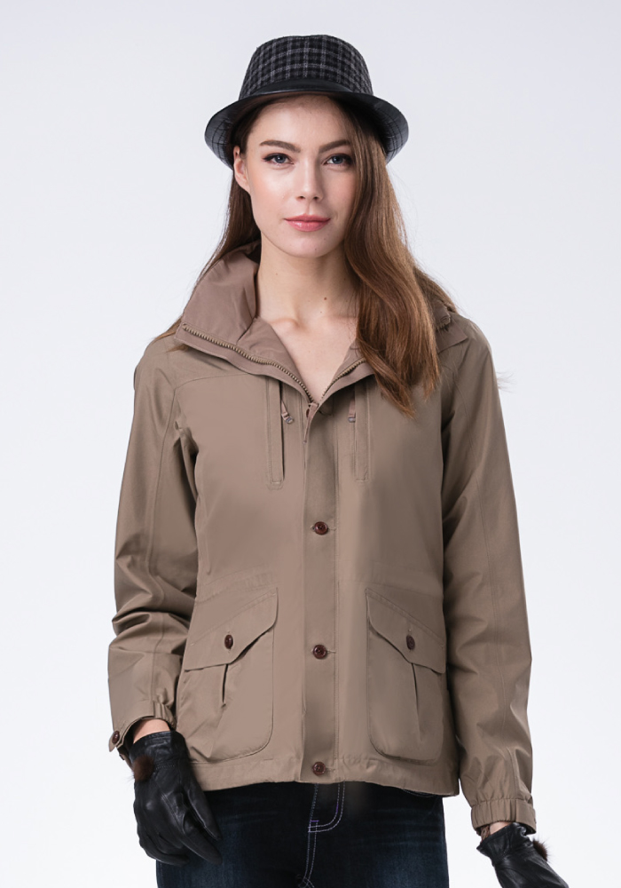 JORDON橋登 女款 GORE-TEX 單件式防風雨透氣休閒外套 (石灰/深卡)