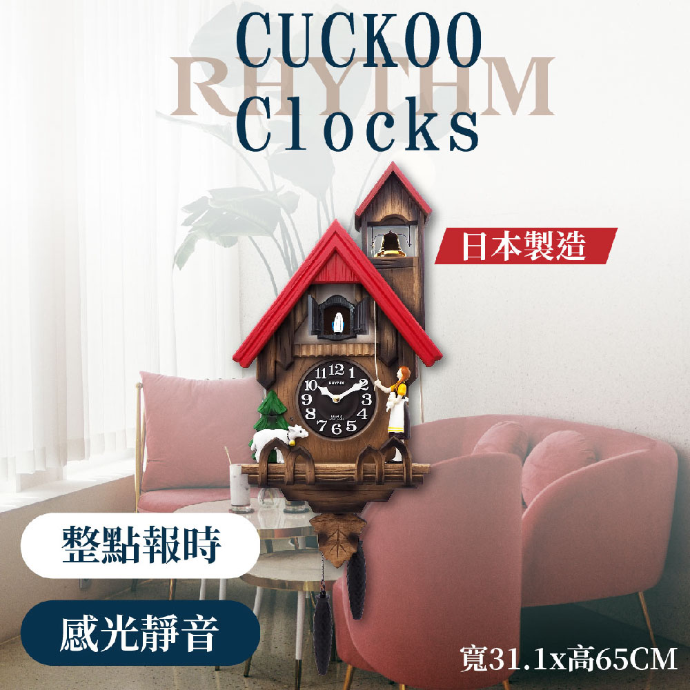 RHYTHM麗聲 日本鐘-熱賣款/日本原裝進口/手工拼接/傳統服飾拉鈴少女小木屋/布穀鳥咕咕鐘
