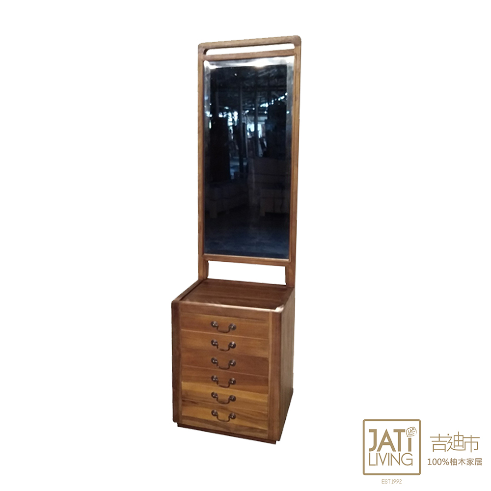吉迪市柚木家具 【吉迪市100%全柚木家具】柚木三抽收納式穿衣鏡 鏡子 化妝 抽屜 收納櫃 RPOT010B