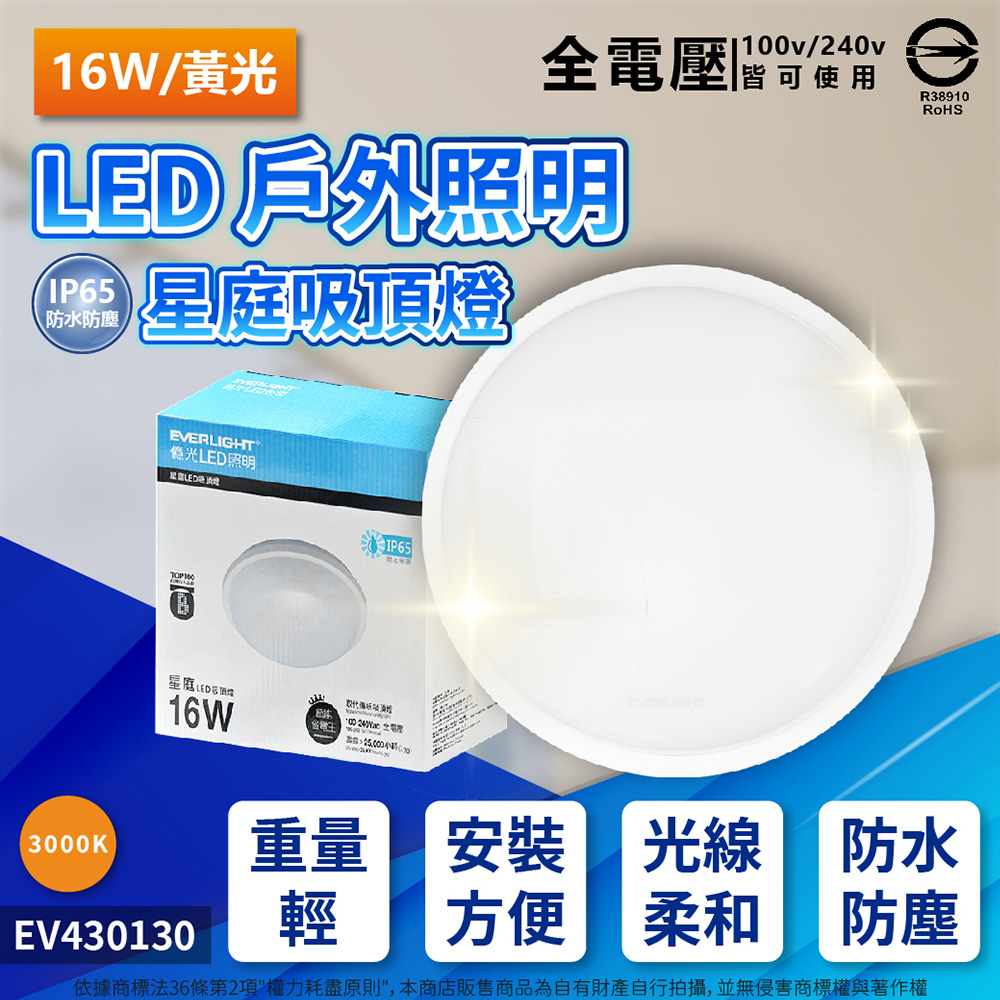 EVERLIGHT億光 LED 星庭 16W 3000K 黃光 全電壓 IP65 防水戶外吸頂燈 _ EV430130