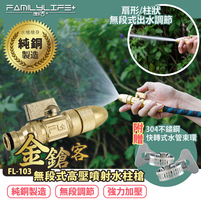 FL生活+ 金鎗客神級無段式高壓噴射水柱槍(FL-103) 伸縮水管橡膠水管均可裝