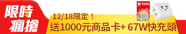 限量送1000千元商品卡+67W快充頭(12/18限定),登送最高2712P幣+1千元商品卡(限量)