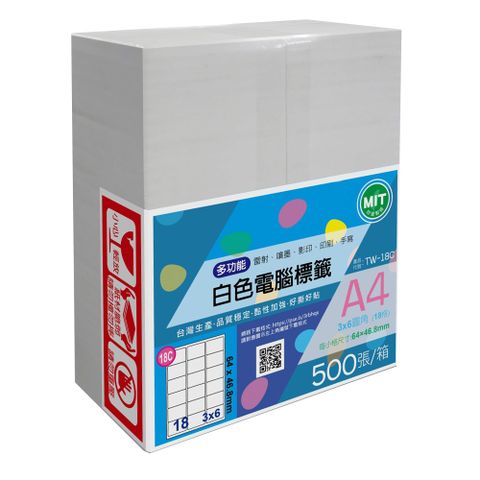 台灣製造-多功能白色電腦標籤-18格圓角-TW-18C-1箱500張