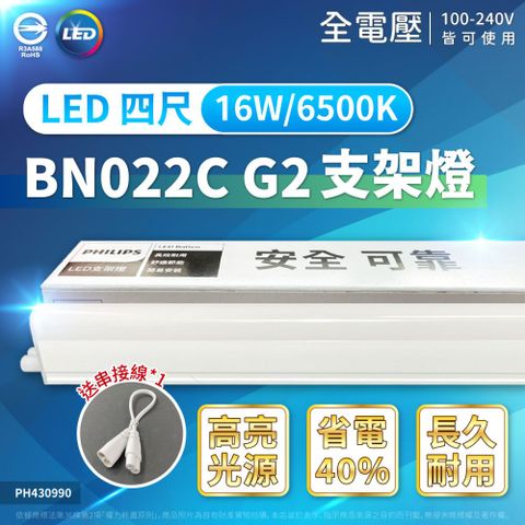 PHILIPS 飛利浦 【6入組】易省 BN022C LED支架燈 16W 4尺 全電壓 支架燈 層板燈