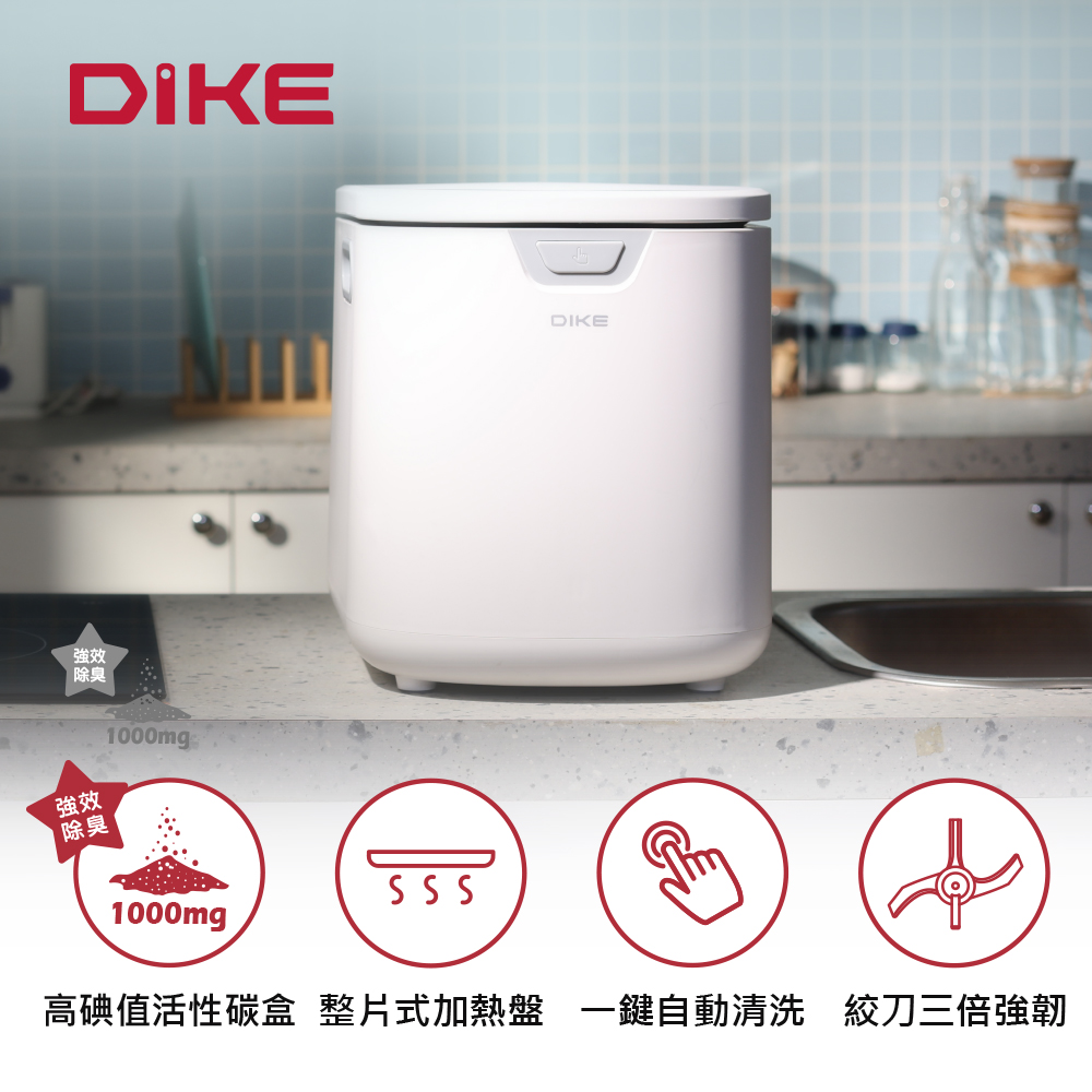 DIKE 2.5L絞碎熱烘智能廚餘處理機(內含1個活性碳過濾匣)HKE521WT