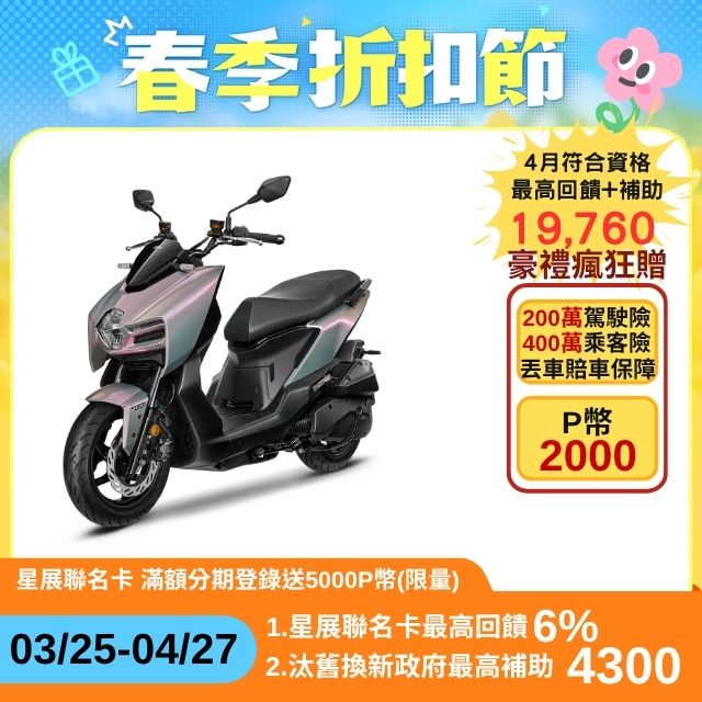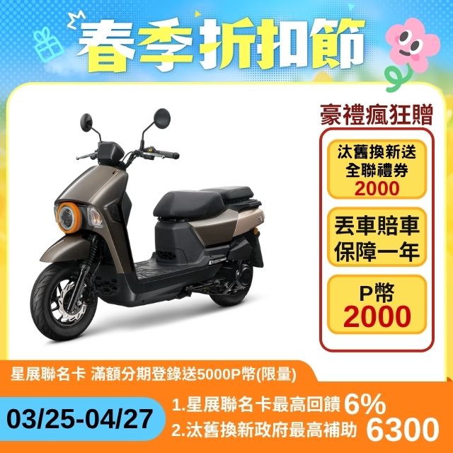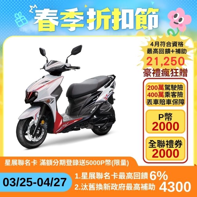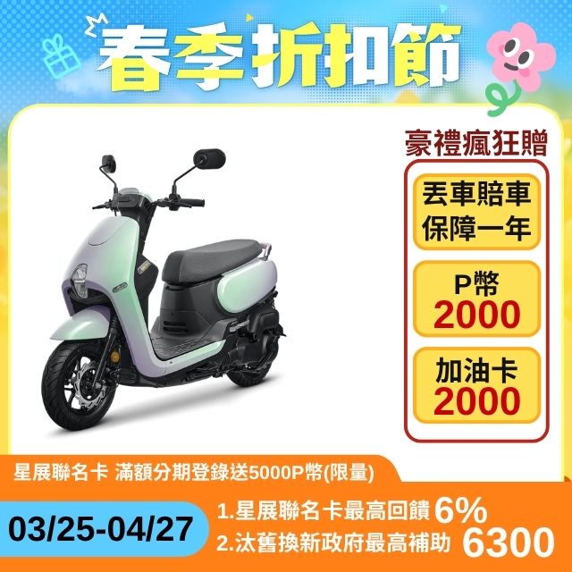 信用卡的五千點是要抽,有抽中才有,然後自己要付牌險約兩千五,選號加一千,代辦費兩百,這樣是三千七,去機車行的刷卡價是含牌險的,也就是說就算你抽中五千,扣牌險其實你只優惠一兩千而已,產品是沒什麼問題,但讓我再選一次我就不上網買了,直接去機車行辦分期就好了