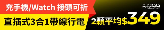 【12/26一日限定$388、2件平均$349】可充3設備!手機直插+帶充電線+Apple Watch無線充